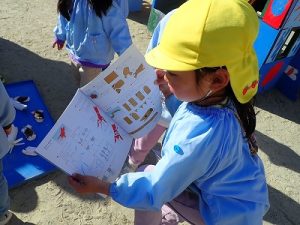 なんと!園児の中で、その絵本を見て実際に魚や釣竿を作って持ってきてくれた子がいました!