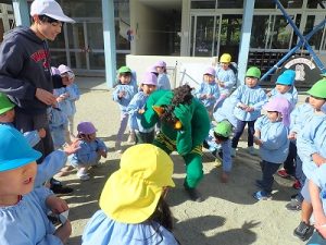 年少組の子どもたちには初めての体験です。怖がる子もいましたが、みんなで協力して鬼退治ができました。