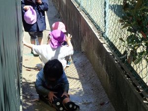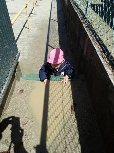 本園では、子どもたちの気持ちに寄り添うことから成長を促していきたいと考えていますので、「汚れるからやめなさい」とか、「きたいないからやめなさい」的な言葉かけはしません。