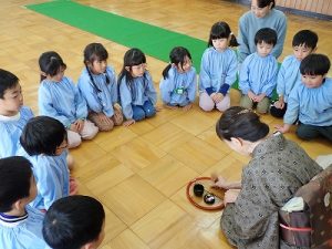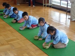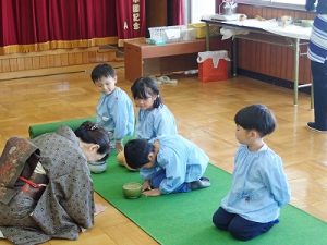 お点前を見てから、実際に園児たちも抹茶をいただきました。