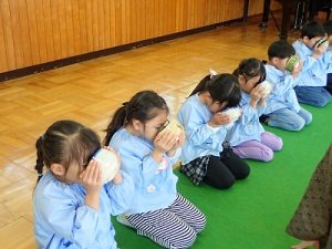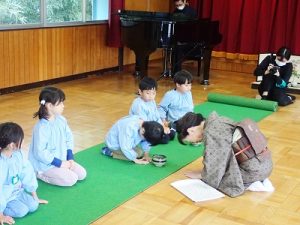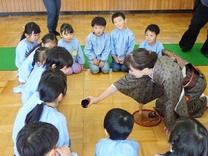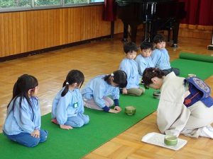 お点前を見てから、実際に園児たちも抹茶をいただきました。