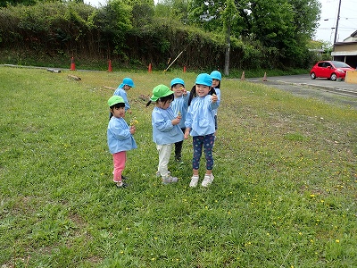 年長と年少は4月14日に年中は18日に、近所の空き地に「おさんぽ」に出かけました。
