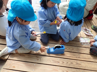 虫を見つけて遊んだり、タンポポ摘みに夢中になったりと、少しは気分転換になればと思います。