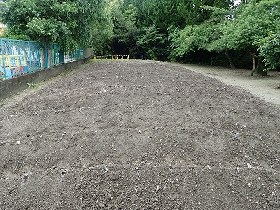 先生たちが畑を耕し、耕運機で土起しをして「うね」までつくりました。