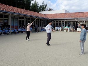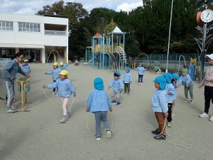 そのあと、自分たちのやりたい種目のなわとび遊びを一緒に楽しみました。